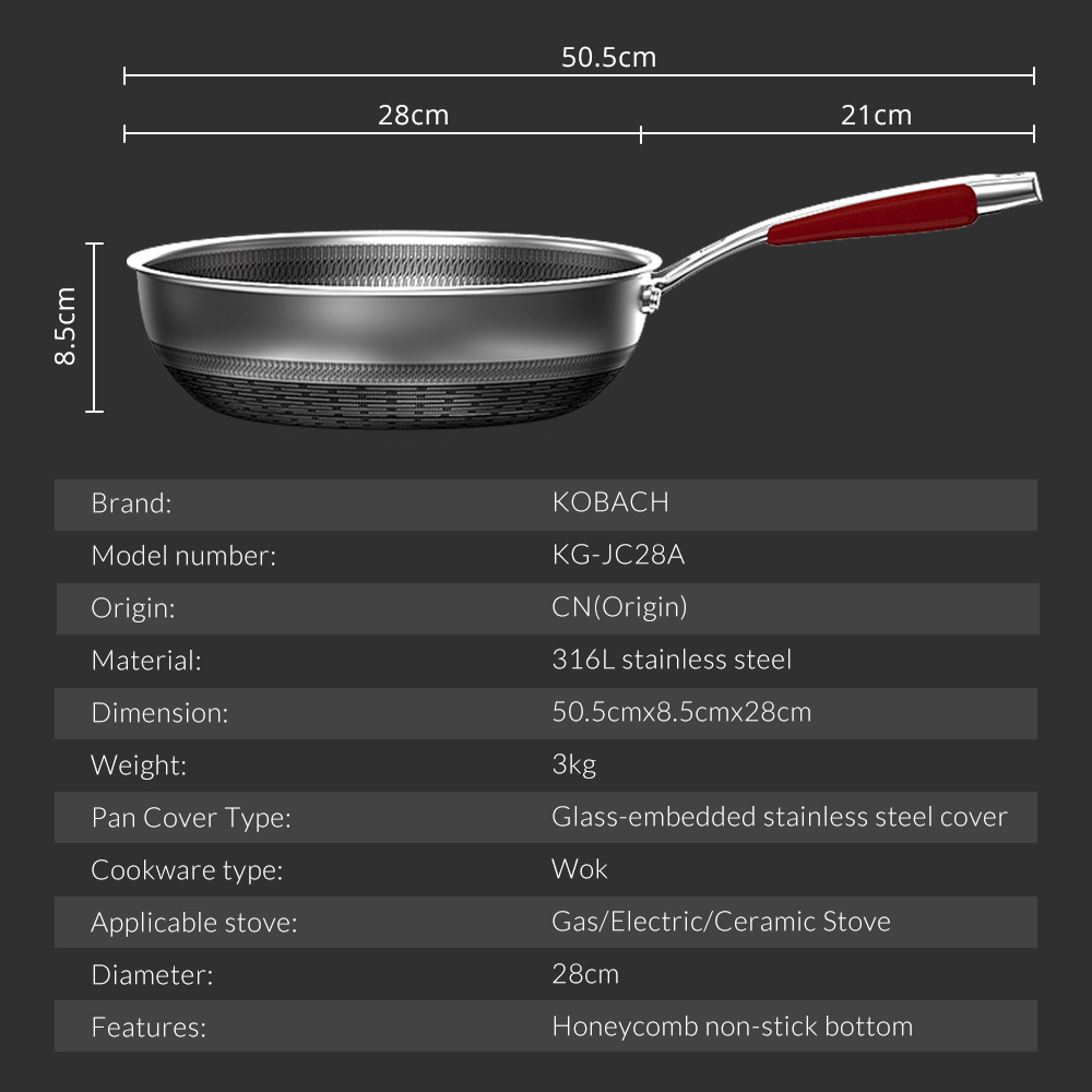 Be the first to review “KOBACH Frying Pan 28cm Kitchen Nonstick Pan 316L Stainless Steel Pan Nonstick Wok Electric Induction Pan”